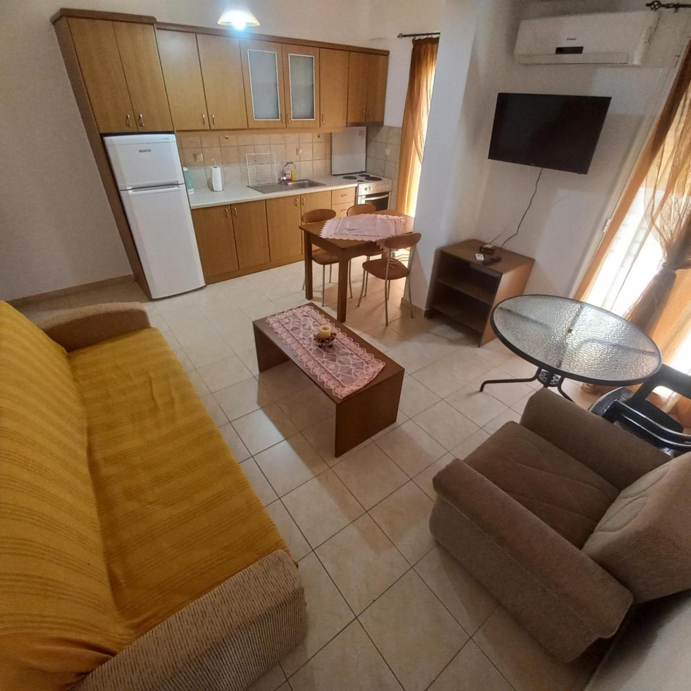 One-Bedroom Apartment. This air-conditioned apartment is comprised of 1 living room, 1 separate bedroom and 1 bathroom with a bath or a shower. In the kitchen, guests will find a refrigerator, kitchenware and an electric kettle. Featuring a balcony with mountain views, this apartment also offers a seating area and a flat-screen TV. The unit offers 2 beds. ;