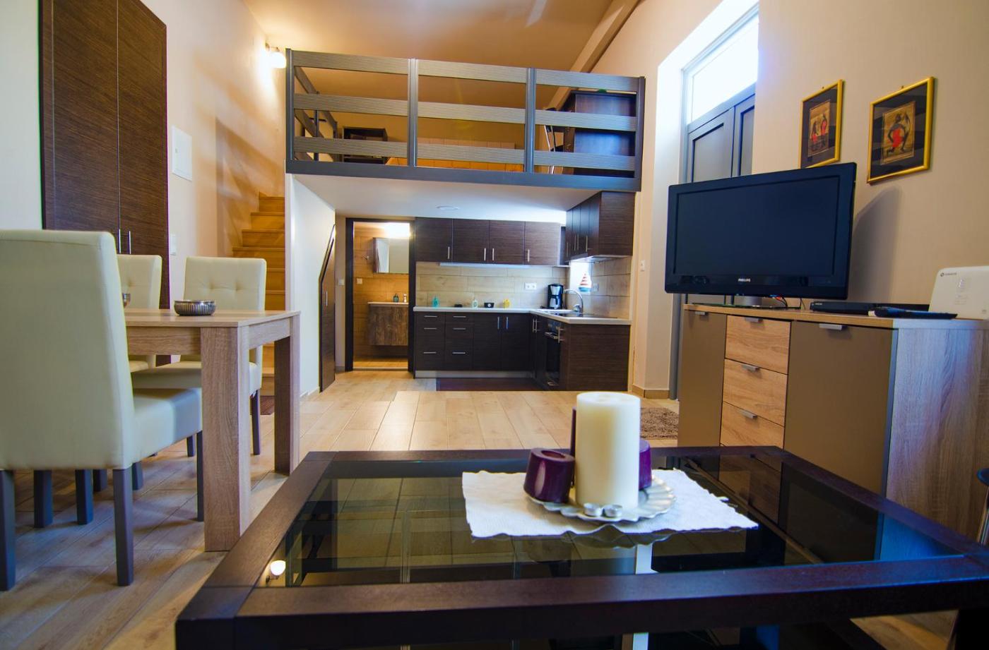 Each unit features a terrace, a fully equipped kitchenette with an oven, a seating area, a flat-screen TV, a washing machine, and a private bathroom with a bath or shower and slippers. A toaster, a stovetop and kitchenware are also available, as well as a coffee machine. At the apartment complex, every unit comes with bed linen and towels.